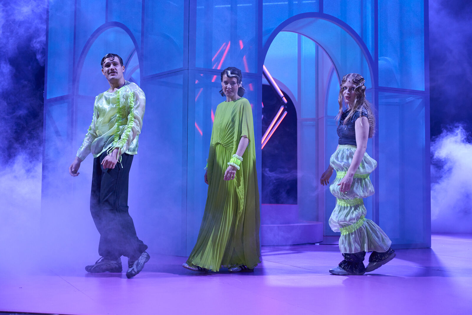 Im Backstagebereich des Welttheaters landen die frisch Verstorbenen – empfangen von Bühnentechnikerin Hollis, die mit Kollege Bellamy die Show Menschheit am Laufen hält. Doch nicht alle wollen ihr Leben loslassen. In Noah Haidles Auftragswerk für das Theater Oberhausen wird der letzte Akt der Menschheit zur grotesk-bittersüßen Party. Ein Plädoyer für die Menschheit, zwischen Sehnsucht und Hoffnung.