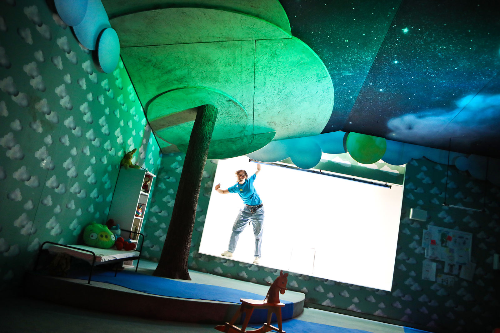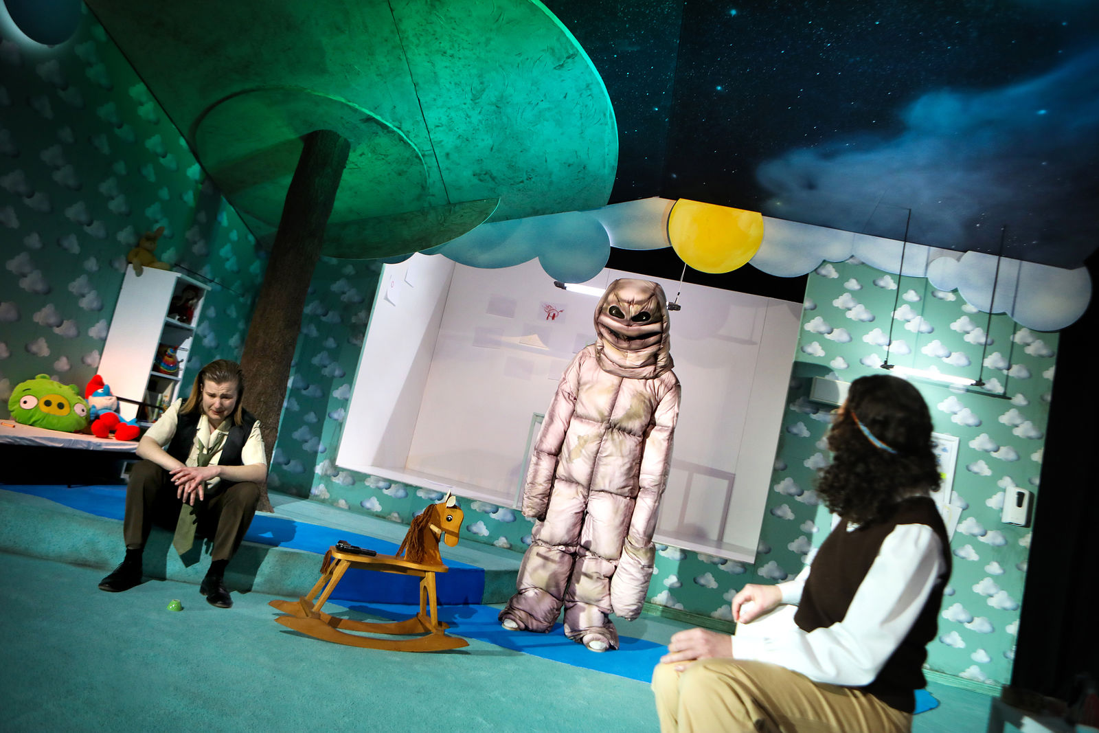 Guy Clemens, an ensemble member at Schauspielhaus Bochum (who can currently be seen in Ashes to Ashes), makes his directing debut with The Pillowman. With four actors he embarks on a journey to find the damaged children in us all, searching for a really good story inside the labyrinth of endless possibilities called literature.